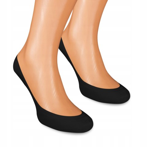 MORAJ CBD250 to niskie, gładkie stopki damskie w klasycznym czarnym kolorze. Cienkie, a jednocześnie trwałe - znakomicie sprawdzą się w okresie wiosenno-letnim. Posiadają silikonową zapiętkę, co zapobiega ich ześlizgiwaniu. Dodatkowo od spodu posiadają drobne gumowe aplikacje, o właściwościach antypoślizgowych.