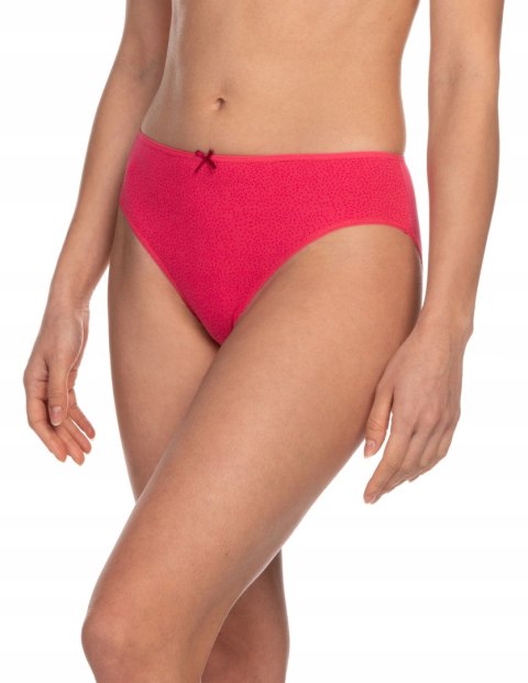 Lama 122BI41 to 3 pary wyjątkowych majtek damskich wykonanych z miękkiej i miłej w dotyku bawełny. Figi cechuje perfekcyjne dopasowanie do ciała oraz fason bikini odkrywający pośladki. Materiał z którego są wykonane, jest delikatny dla skóry, miękki i wytrzymały. Majtki zapewniają maksymalny komfort podczas noszenia. W pasie zastosowano uroczą, ozdobną kokardkę. W zestawie znajdują się 3 pary o różnych wzorach.