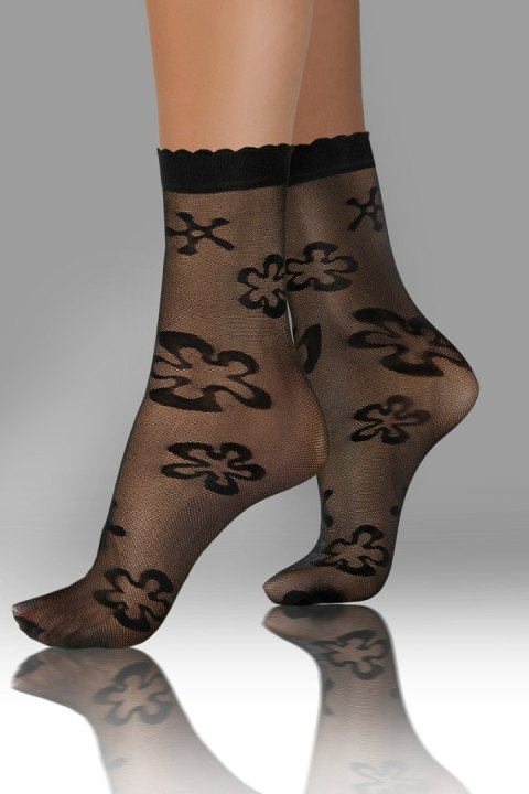Transparentna przędza podkreśla lekkość i subtelność, a dekoracyjny motyw nadaje im niepowtarzalnego charakteru. Brak wzmocnień na palcach zapewnia efekt gołej stopy, co czyni je idealnym wyborem do odkrytego obuwia. Nieuciskający ściągacz gwarantuje wygodę noszenia przez cały dzień, nie powodując dyskomfortu. Te skarpetki to doskonałe połączenie klasyki i nowoczesności.