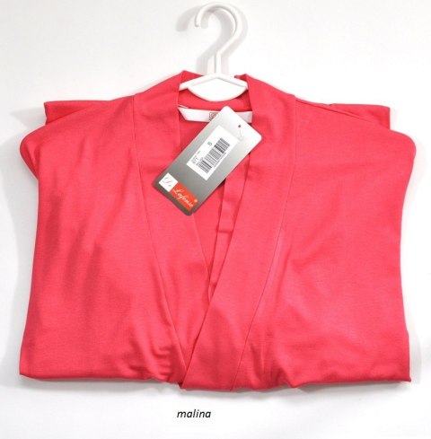 Elegancki, prosty szlafrok o minimalistycznym kroju dostępny w róznych kolorach. Długość do kolan, rękawy 3/4 , wiązany w pasie, wygodny w noszeniu. Pasuje do koszulek oraz piżam z kolekcji Visa. Skład: 94% viscosa, 6% lycra.