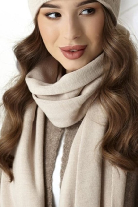 Szalik damski gładki z przyjemnej w dotyku włóczki, niegruby, idealny do stylizacji sportowych i eleganckich. Jego rozmiar pozwala na ciekawe wiązania. Skład z dodatkiem wełny gwarantuje ciepło i komfort noszenia.