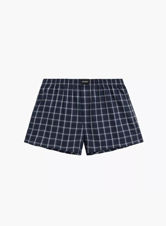 Bokserki męskie o luźnym kroju z nogawkami o klasycznej długości oraz talią wykończoną miękką, nieuciskającą gumą wewnętrzną ozdobioną logo Atlantic. Skład: 100% bawełna.