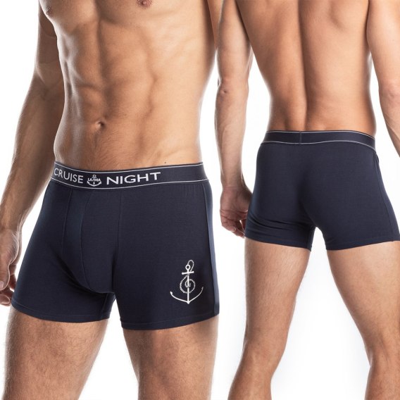 Lama 983SZG to przylegające do ciała bokserki w czarnym kolorze i morskim motywem.