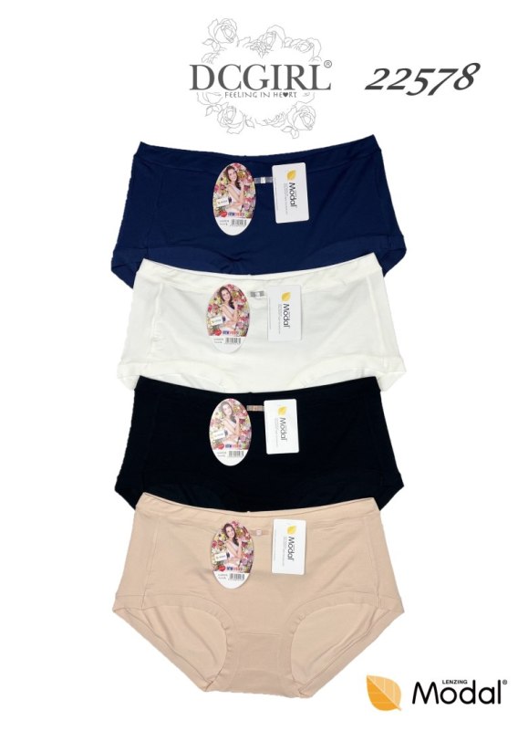 Figi damskie uszyte z delikatnego modalu. Wysoko zabudowane na biodrach. Pakowane po 12 sztuk w mixie kolorów. W opakowaniu mix rozmiarów (S,M,L,XL). Skład: 94% modal, 6% elastan.