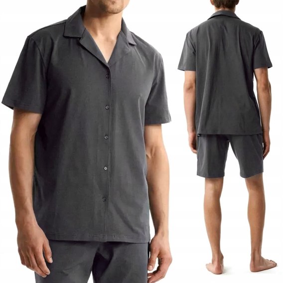 ⭐ Góra piżamy składa się z grafitowej bawełnianej koszuli zapinanej na guziki.