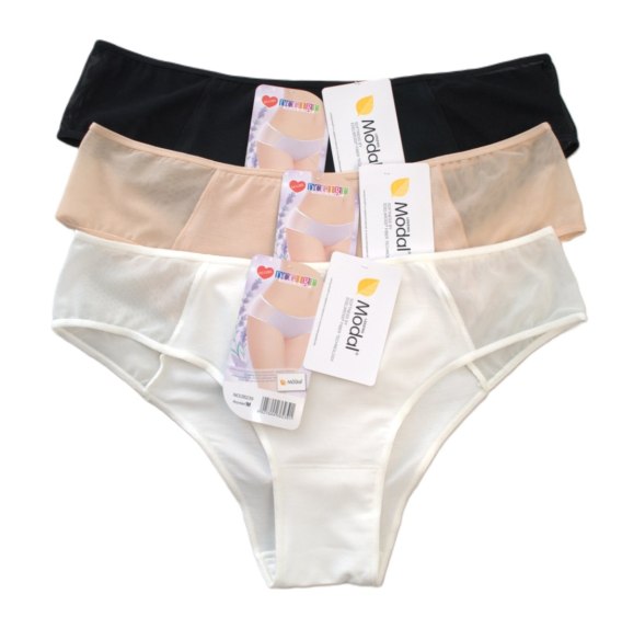 Figi damskie o kroju bikini, wykonane z miękkiego modalu. Idealnie dopasowują się do ciała. Pakowane po 12 sztuk. W opakowaniu mix rozmiarów (S,M,L,XL) Skład: 94% modal, 6% elastan.