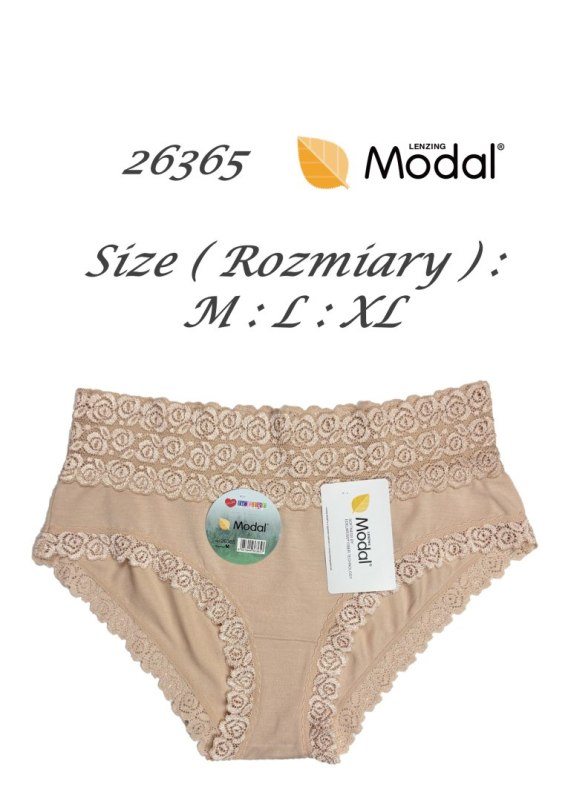 Figi damskie uszyte z delikatnego modalu. Pakowane po 12 sztuk w mixie kolorów. W opakowaniu mix rozmiarów (S,M,L,XL). Skład: 94% modal, 6% elastan.