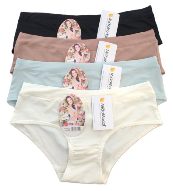 Figi damskie wykonane z miękkiego micromodalu. Pakowane po 12 sztuk w różnych wariantach kolorystycznych. W opakowaniu mix rozmiarów (S,M,L,XL). Skład: 90% micromodal, 10% elastan.