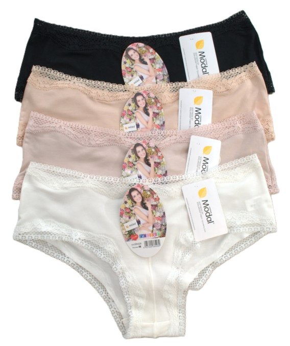 Figi damskie, wykonane z miękkiego modalu. Idealnie dopasowują się do ciała. Pakowane po 12 sztuk. W opakowaniu mix rozmiarów (S,M,L,XL) i kolorów. Skład: 94% modal,6% elastan.