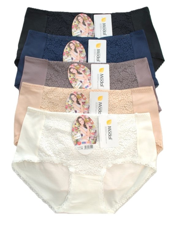 Figi damskie uszyte z delikatnego modalu. Pakowane po 12 sztuk w mixie kolorów. W opakowaniu mix rozmiarów (S,M,L,XL). Skład: 94% modal, 6% elastan.