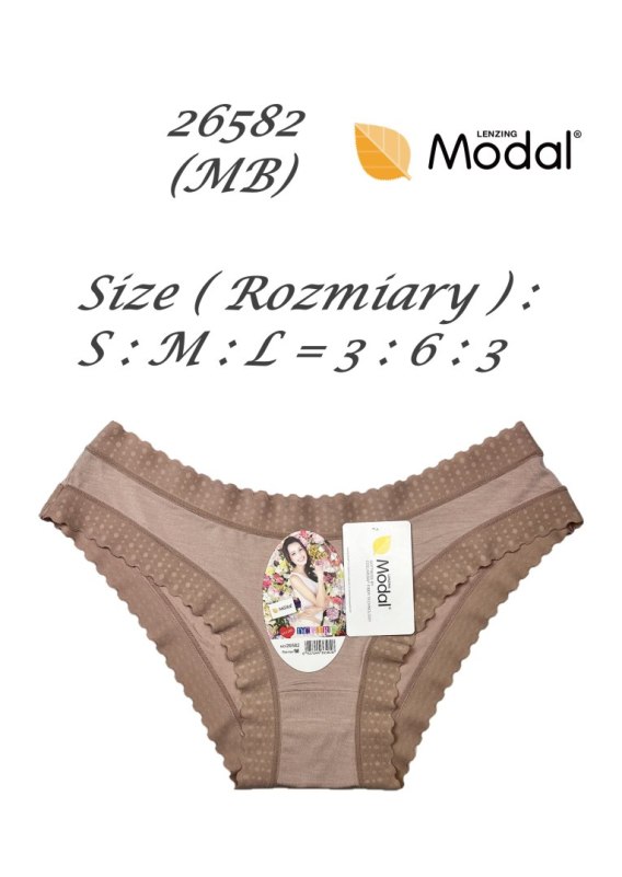 Figi damskie wykonane z wysokiej jakości modalu. Ozdobione delikatną koronką. Wyjątkowo miłe i przyjemne w dotyku. Pakowane po 12szt w mixie kolorów i rozmiarach (S,M,L). Skład: 94% modal, 6% elastan.