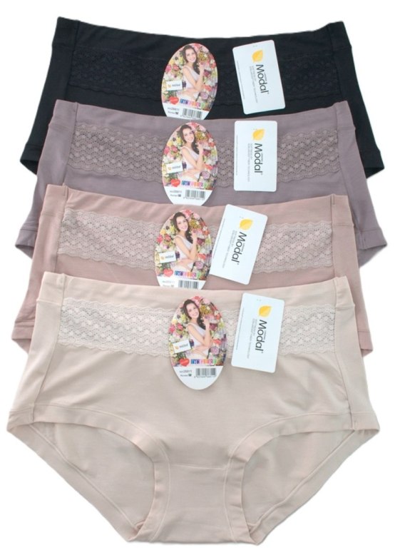 Figi damskie uszyte z delikatnego modalu. Pakowane po 12 sztuk w mixie kolorów. W opakowaniu mix rozmiarów (M,L,XL). Skład: 94% modal, 6% elastan.