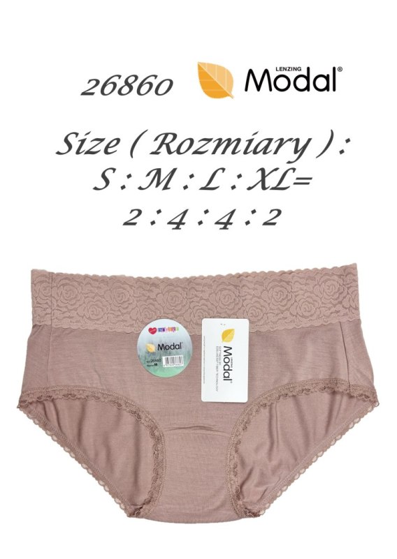 Figi damskie uszyte z delikatnego modalu. Idealnie dopasowują sie do ciała. Pakowane po 12 sztuk w mixie kolorów. W opakowaniu mix rozmiarów (S,M,L,XL). Skład: 94% modal, 6% elastan.