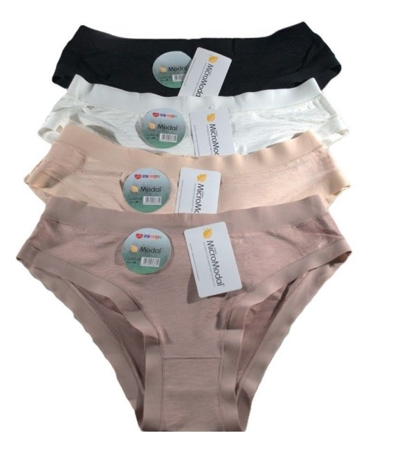 Figi damskie wykonane z miękkiego modalu. Pakowane po 12 sztuk w różnych rozmiarach (L,XL,XXL) i kolorach. Skład: 89,5% modal, 10,5% spandex.