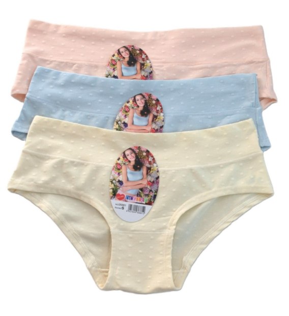 Figi damskie o kroju bikini, wykonane z wysokiej jakości materiału. W pasie szersza, wygodna, nieuciskająca guma. Pakowane po 12 sztuk w rozmiarze M - mix kolorów. Skład: 62% wiskoza, 26% cotton,12% spandex.