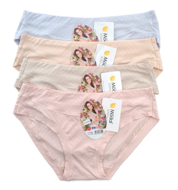 Figi damskie o kroju bikini. Wysoko zabudowane na bokach, wykonane z delikatnego materiału. Pakowane po 12 szt w mix rozmiarów i kolorów. Skład: 89,5% modal, 10,5%spandex