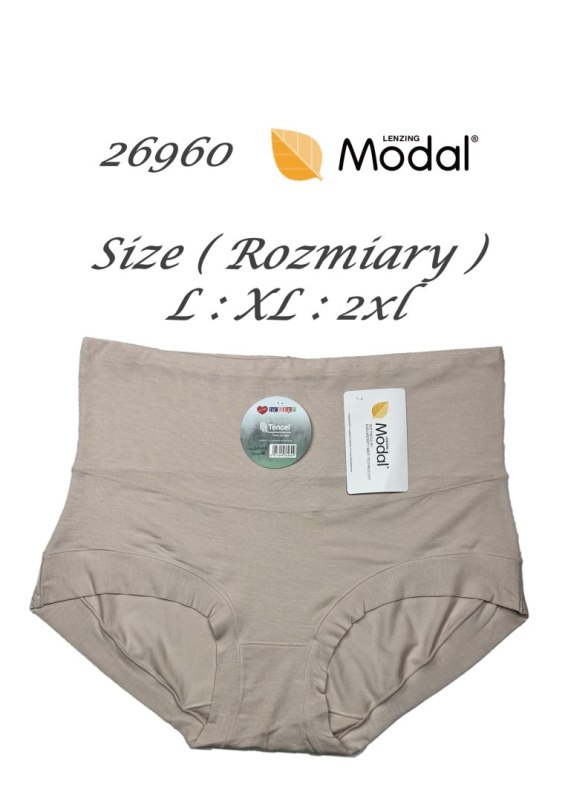 Figi damskie uszyte z delikatnego modalu. Wysoki stan. Pakowane po 12 sztuk w mixie kolorów. W opakowaniu mix rozmiarów (L,XL,XXL). Skład: 94% modal, 6% elastan.