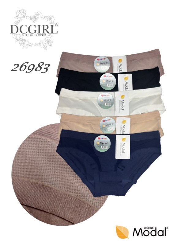 Figi damskie uszyte z delikatnego modalu ozdobione subtelną koronką. Pakowane po 12 sztuk w mixie kolorów. W opakowaniu mix rozmiarów (S,M,L,XL). Skład: 94% modal, 6% elastan.