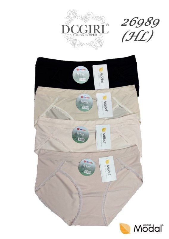Figi damskie uszyte z delikatnego modalu z efektownym wycięciem na nogawki. Ozdobione koronką. Pakowane po 12 sztuk w mixie kolorów. W opakowaniu mix rozmiarów (S,M,L). Skład: 94% modal, 6% elastan.