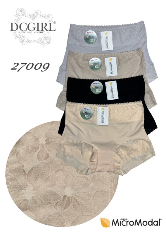 Figi damskie wykonane z wysokiej jakości miękkiego modalu. Piękne stonowane kolory, ozdobione koronką. Pakowane po 12 sztuk w mixie kolorów. W opakowaniu mix rozmiarów (L,XL,2XL). Skład: 94% modal, 6% elastan.