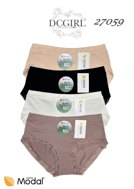 Figi damskie uszyte z delikatnego, gładkiego modalu, nogawki ozdobione delikatną koronką. Idealnie dopasowują się do ciała. Pakowane po 12 sztuk w mixie kolorów i rozmiarów (S,M,L,XL). Skład: 94% modal, 6% elastan.