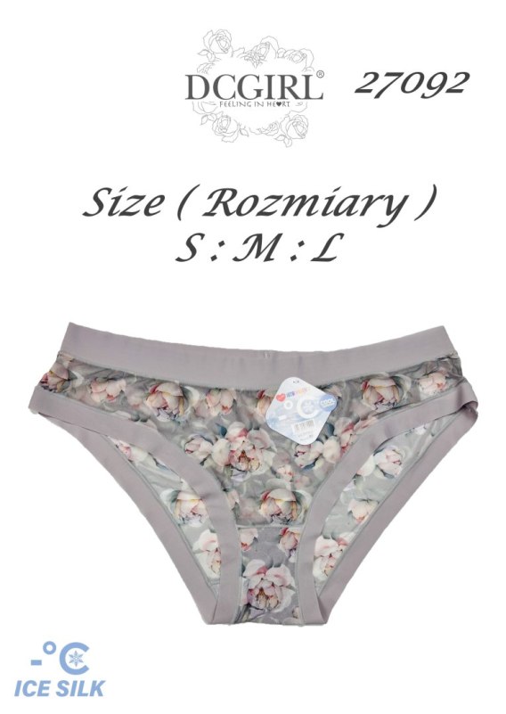 Wyjątkowo delikatne i cienkie figi damskie w kwiaty, wykonane z materiału o dużej przepuszczalności i własciwościach higroskopijnych. Pakowane po 12 sztuk w mix kolorów i rozmiarów ( S,M,L). Skład: 75% nylon, 25% spandex.