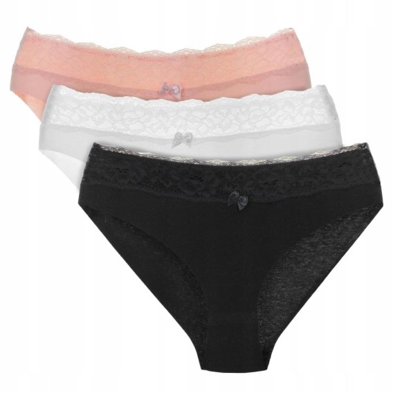 Figi damskie BAWEŁNIANE koronkowe 3 PARY MORAJ - M