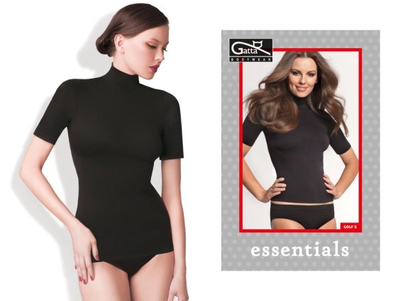 Golfy z krótkim rękawem, są wykonane z miękkiej i przyjemnej w dotyku mikrofibry o satynowym połysku, bez bocznych szwów, która idealnie dopasowuje się do ciała, dzięki czemu zapewnia komfort w użytkowaniu.
