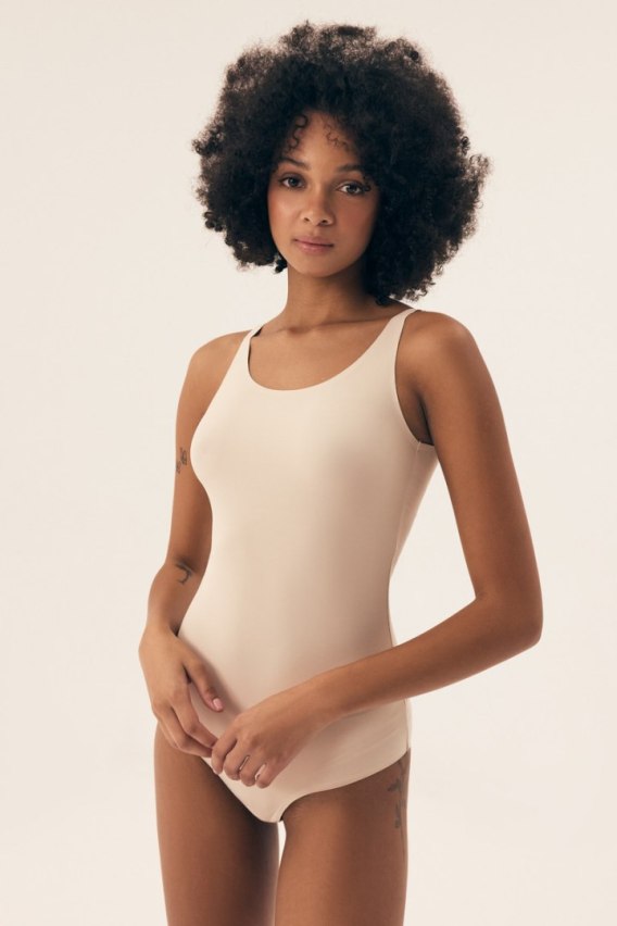 Damskie body BYTE 42852 od Henderson Ladies to esencja wygody i minimalizmu. Bezszwowa konstrukcja i gładka faktura sprawiają, że idealnie dopasowuje się do ciała, nie odznaczając się pod ubraniem. Wykonane z elastycznej mieszanki poliamidu i elastanu, zapewnia doskonałe dopasowanie oraz komfort noszenia przez cały dzień. To perfekcyjna baza do codziennych i eleganckich stylizacji. Ramiączka z regulacją. Krok zapinany na zatrzaski. Dostępne w dwóch kolorach.