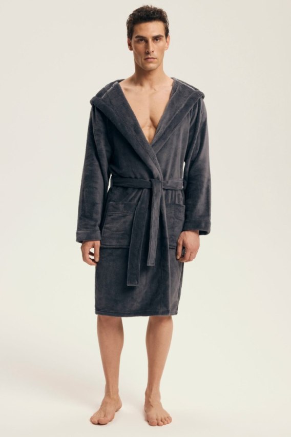 Szlafrok męski VOCAL 43447 AW25 to idealna propozycja dla mężczyzn ceniących wygodę i nowoczesny, minimalistyczny styl. Wykonany w 100% z miękkiego i ciepłego poliestru, doskonale sprawdza się podczas chłodnych poranków, po kąpieli oraz w trakcie domowego relaksu. Model wyposażono w praktyczny kaptur, który zapewnia dodatkowe ciepło oraz duże kieszenie na drobiazgi. Klasyczne wiązanie w pasie umożliwia idealne dopasowanie. Głęboki grafitowy kolor dodaje mu elegancji i ponadczasowego charakteru.
