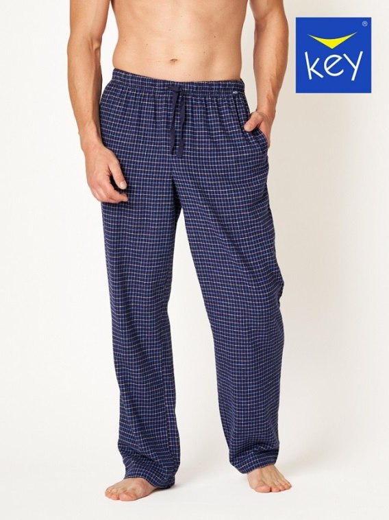 Klasyczne spodnie o prostym kroju nogawki z wygodną, miękką gumą i troczkiem w pasie. Z przodu rozporek na guziki, a po bokach głębokie kieszenie. Skład: 100% flanela bawełniana.