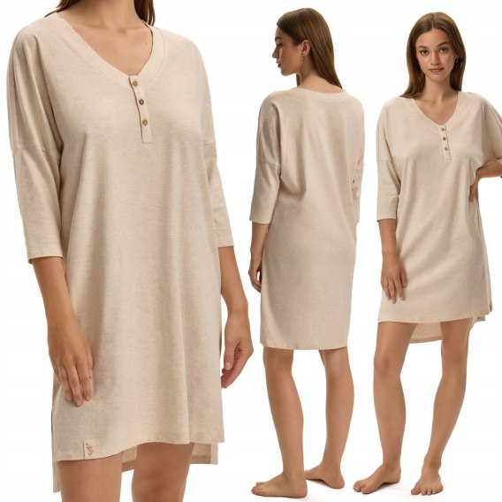 ⭐ Beżowa koszula nocna wykonana z przyjemnej w dotyku bawełny, luźny krój zapewnia dużą swobodę.