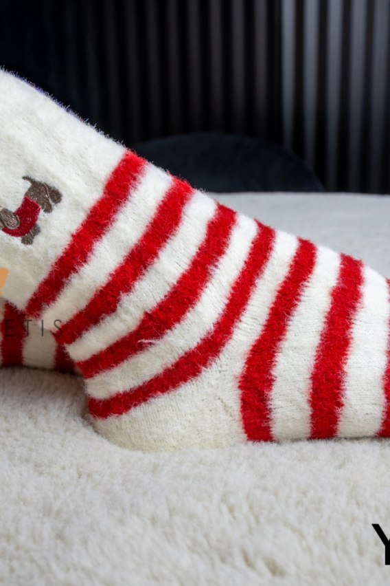 Skarpetki świąteczne Magnetis YN-5034 „Jamnik” to połączenie uroku, wygody i zimowego klimatu. Wykonane z wyjątkowo miękkiej przędzy z domieszką wiskozy, są niezwykle przyjemne w dotyku i doskonale chronią przed chłodem. Ich kremowo-czerwony wzór w paski, uzupełniony słodką aplikacją jamnika w świątecznym sweterku, doda Twojej stylizacji humoru i ciepła. Idealne na zimowe wieczory w domu lub jako prezent dla bliskiej osoby.