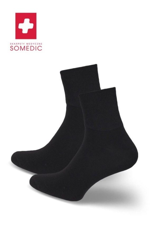 Skarpety medyczne SOMEDIC to specjalistyczne wyroby tekstylne, które zapewniają maksymalny komfort i ochronę zdrowia stóp. Dzięki zastosowaniu nowoczesnego włókna Prolen Siltex® z dodatkiem jonów srebra, skutecznie przeciwdziałają rozwojowi bakterii, grzybów i pleśni, eliminując nieprzyjemne zapachy i utrzymując biologiczną równowagę skóry. Ich bezuciskowa konstrukcja wspomaga prawidłowe krążenie, co czyni je idealnym wyborem dla osób z cukrzycą, chorobami żył, nawracającą grzybicą stóp czy nadpotliwością. Skarpety SOMEDIC to gwarancja komfortu, higieny i profilaktyki zdrowotnej – nie tylko dla osób zmagających się z chorobami, ale także dla każdego, kto chce zadbać o zdrowie swoich stóp.