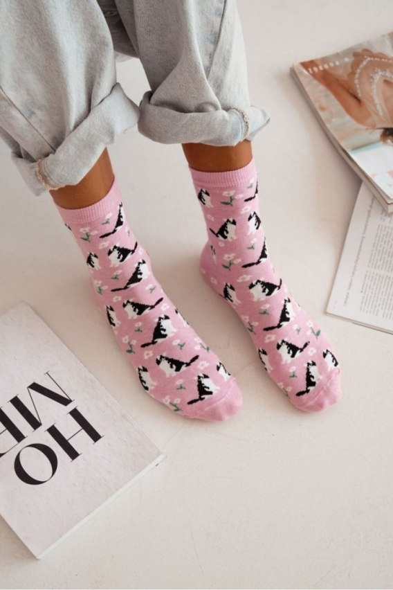 • MILENA Skarpetki damskie Kotki i kwiatki 0200.173