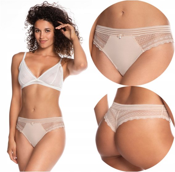 Lama 4004ST to 2 pary wyjątkowych majtek damskich wykonanych z miękkiej i miłej w dotyku bawełny. Stringi cechuje perfekcyjne dopasowanie oraz koronkowe wstawki odkrywające ciało. Materiał z którego są wykonane, jest delikatny dla skóry, miękki i wytrzymały. Majtki zapewniają maksymalny komfort podczas noszenia. W pasie zastosowano uroczą, ozdobną kokardkę. W zestawie znajdują się 2 beżowe pary.