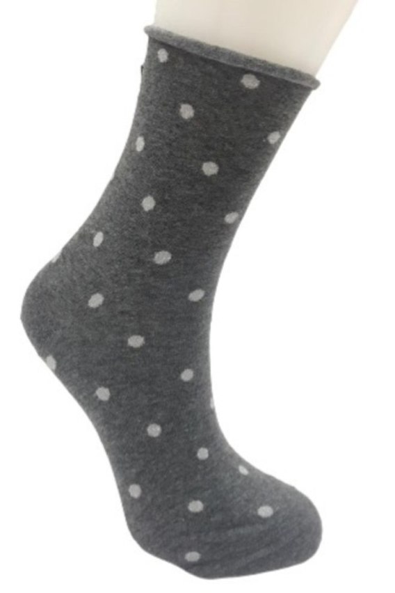 Skarpety bawełniane z lureksem bez ściągacza. Skład surowcowy: 80% bawełna, 18% poliamid, 2% elastan.