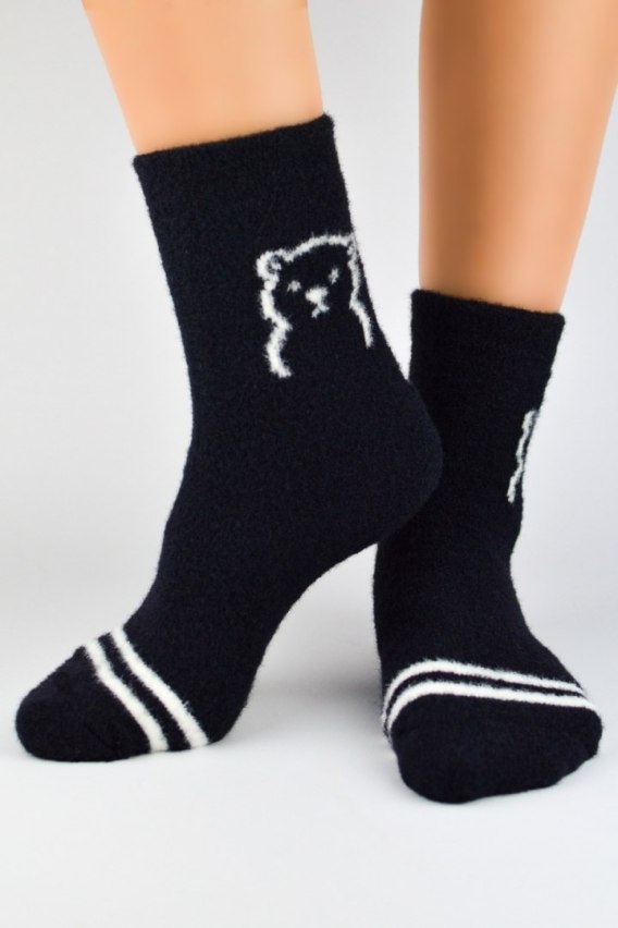 Skarpety damskie puchate z misiem, bezuciskowe, miłe w dotyku, doskonałe na chłodne dni.