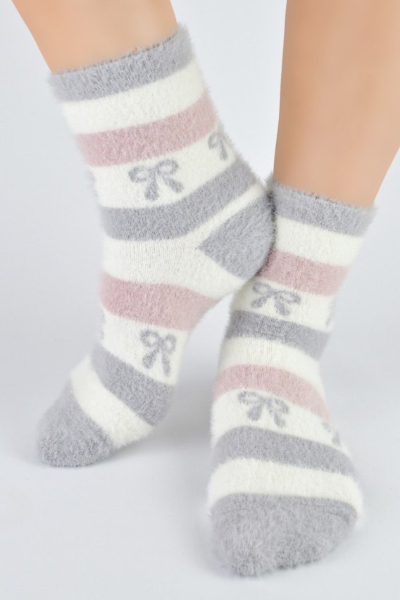 Zimowe wieczory wymagają wyjątkowego komfortu – właśnie to oferują skarpetki puchate NOVITI SP001. Wykonane z miękkiej dzianiny z przewagą poliamidu i dodatkiem poliestru oraz elastanu, gwarantują ciepło, wygodę i elastyczne dopasowanie. Ich wzorzysty, geometryczny design nadaje im nowoczesnego charakteru, dzięki czemu są nie tylko praktyczne, ale i stylowe. Idealne do noszenia w domu, podczas relaksu czy jako uroczy dodatek do zimowych stylizacji. Doskonały wybór dla osób ceniących połączenie funkcjonalności i modnego wyglądu.
