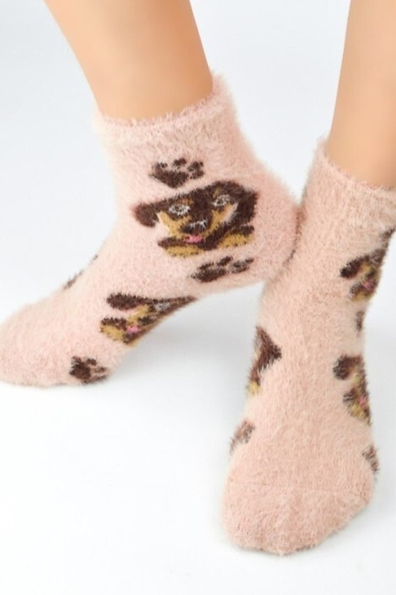 Odkryj wyjątkowy komfort z damskimi skarpetami SP008 Puchate Pies Łapki, które łączą uroczy design z niezwykłą miękkością! Wykonane z puchatej dzianiny, otulają stopy przyjemnym ciepłem, idealnie sprawdzając się w chłodne dni. Skarpetki ozdobione wzorem łapek psa nie tylko rozczulają, ale również zapewniają wygodę dzięki nieuciskającemu ściągaczowi. To doskonały wybór dla kobiet ceniących wygodę, styl i odrobinę humoru w domowym zaciszu.