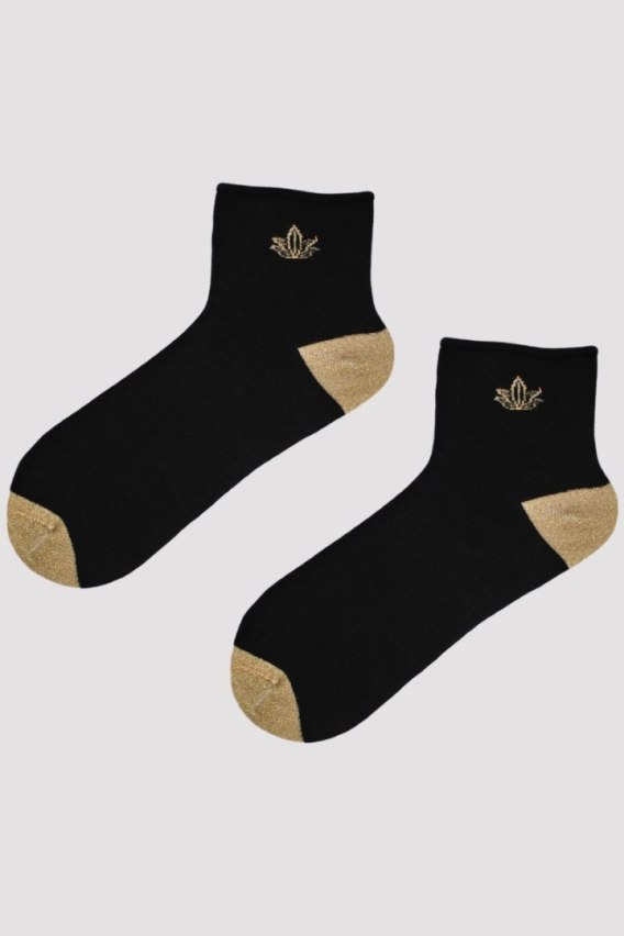 Skarpety damskie bezuciskowe z ozdobnymi lureksowymi elementami. Skład surowcowy: 79% Bawełna, 16% Poliamid, 4% Elastan.