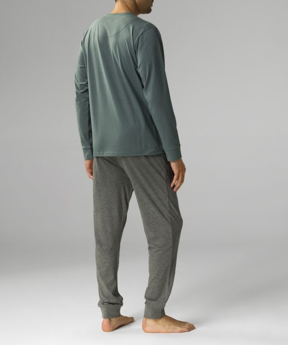 Piżama lekko ovrsize męska z miękkiej bawełny z efektem brzoskwini („peach effect") . Bluza z okrągłym wycięciem przy szyji, ściągacze przy rękawach. Spodnie luźne posiadają kieszenie oraz ściągacze. Skład:100% bawełna.
