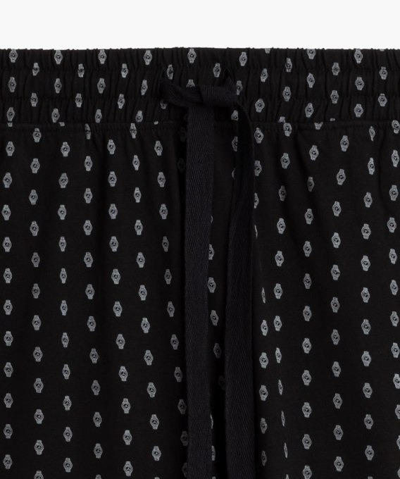 Piżama lekko ovrsize męska z miękkiej bawełny z efektem brzoskwini („peach effect"). Bluza z okrągłym wycięciem przy szyji, ściągacze przy rękawach. Spodnie luźne, we wzorek, posiadają kieszenie oraz ściągacze. Skład:100% bawełna.
