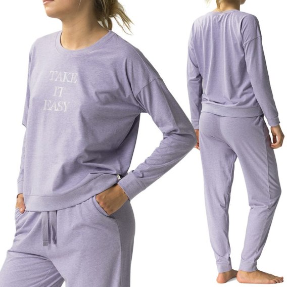 ⭐ Góra piżamy składa się z lawendowej, bawełnianej bluzki z długim rękawem i okrągłym dekoltem.