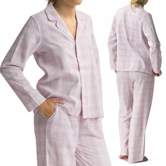 ⭐ Góra piżamy składa się z koszulowej, bawełnianej bluzki z długim rękawem, zapinanej na guziki.