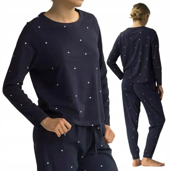 ⭐ Góra piżamy składa się z granatowej, bawełnianej bluzki z długim rękawem z nadrukiem serduszek