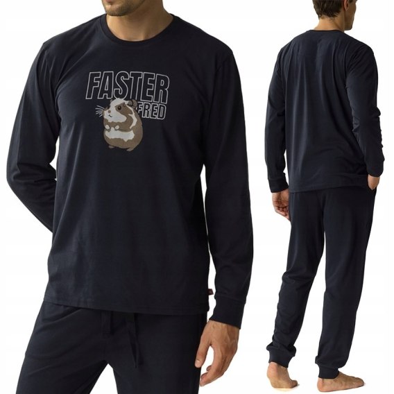 ⭐ Góra piżamy składa się z granatowe bawełnianej bluzki z długim rękawem z zabawnym nadrukiem.