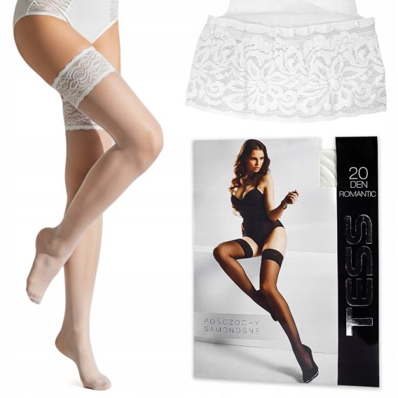 Wykonane z przędzy typu Lycra oplatana, przezroczyste, w górnej części doszyta gumokoronka z podwójnym silikonem o szerokości 8 cm.