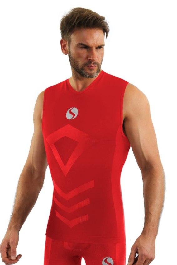 Koszulka termiczna męska bez rękawów. Elastyczny i oddychający materiał działa antyalergicznie i bakteriostatecznie, utrzymuje optymalna tempraturę ciała. Technologia bezszwowa zapewnia idealną swobodę ruchów, a specjalne elastyczne strefy chronia przed otarciami. Idealna do uprawiania sportu. Tkanina o właściwościach termoregulacyjnych zarówno w niskich jak i umiarkowanych temperaturach.