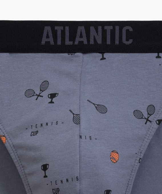 Sportowe slipy na co dzień ozdobione motywem tenisowym. Nieuciskająca guma w talii oraz miękka i przyjemna w dotyku dzianina zapewniają wygodę i swobodę ruchów. Pakowane po 3 szt. Skład: 95% bawełna, 5% elastan.